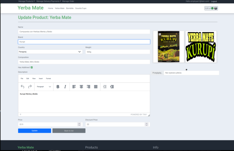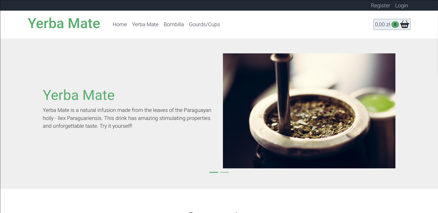 to w pełni funkcjonalny, testowy sklep internetowy z Yerba Mate i innymi produktami przeznaczonymi do picia tego naparu.