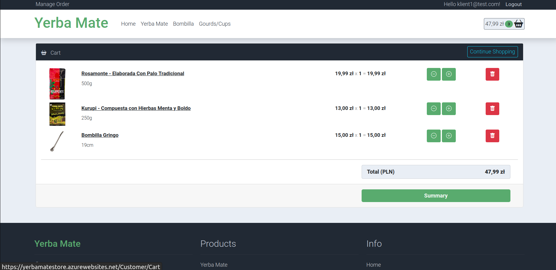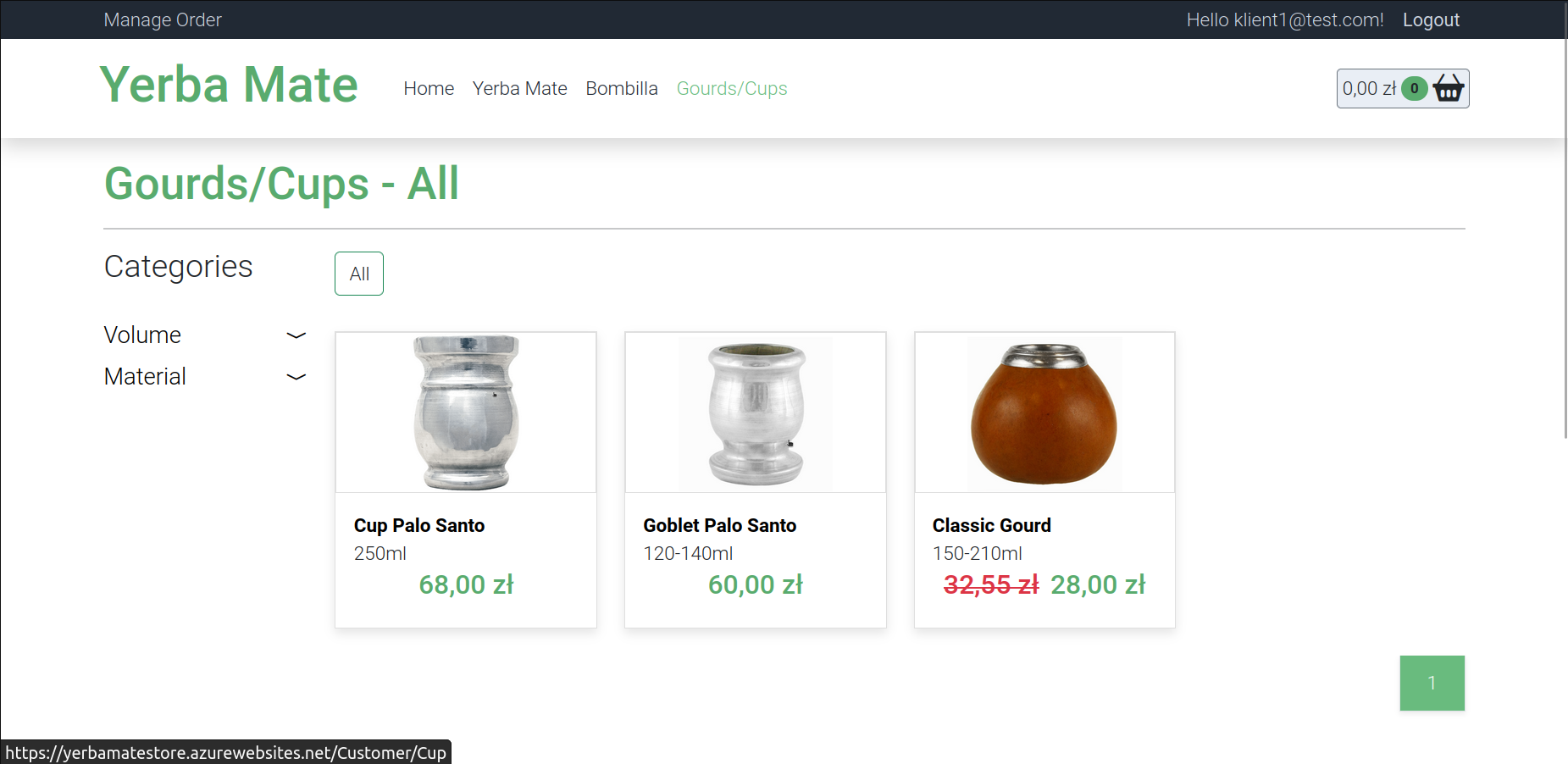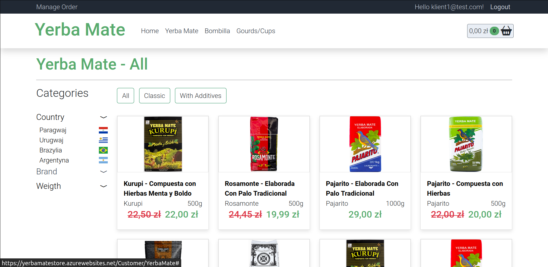 Zapraszam do przetestowania strony! https://yerbamatestore.azurewebsites.net