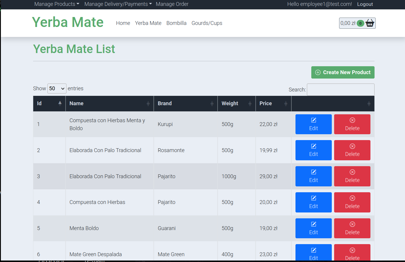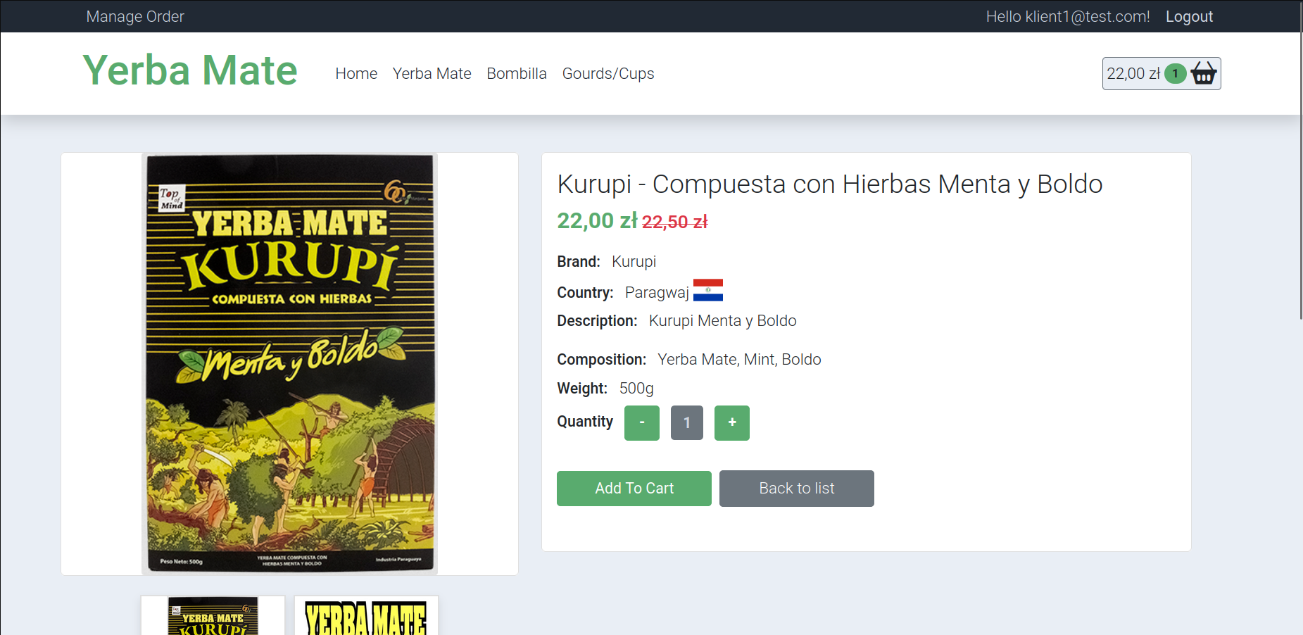 to w pełni funkcjonalny, testowy sklep internetowy z Yerba Mate i innymi produktami przeznaczonymi do picia tego naparu.